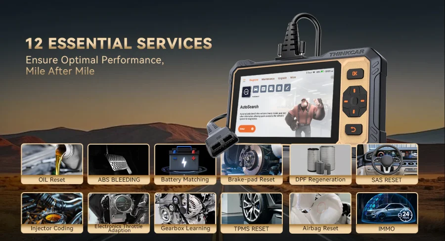 ThinkScan 662 bidirectional scanner is equipped with 12 Critical Maintenance Resets: OIL RESET, Injector Coding, SAS RESET, IMMO, ABS BLEEDING, Battery Matching, Brake-pad Reset, DPF Regeneration, Electronics Throttle Adaption, Gearbox Learning, TPMS RESET, Airbag Reset.