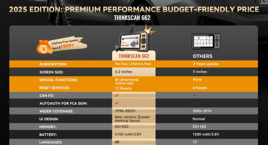 ThinkCar Thinkscan 662 Bi-Directional Scan Tool, All Car Brands, 12 Reset Functions, FREE updates